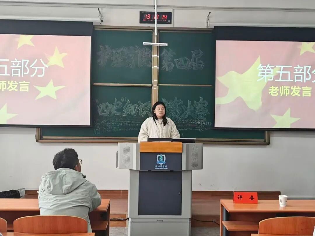 为深化“四史”学习教育,丰富校园思政学习形式,引导护理学子从历史中汲取奋进力量,传承红色基因、赓续红色血脉,护理学院于3月15日在南11、12教拉开“四史”知识竞赛初赛帷幕,并于3月25日在北区润智楼302举办决赛。护理学院辅导员路翔翎、郭龙龙老师担任评委。
