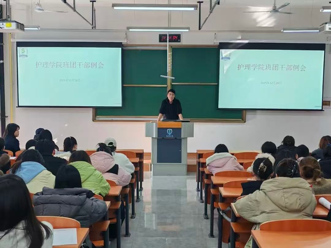 为系统回顾本年度学生工作成效、强化班团干部责任担当与协作效能,统筹规划新学期重点任务推进方向,护理学院于12月25日在本部润智楼401教室召开班团干部会议。本次会议由护理学院党委副书记谢冰主持,研究生、本科及专升本各班级班团干部参加会议。