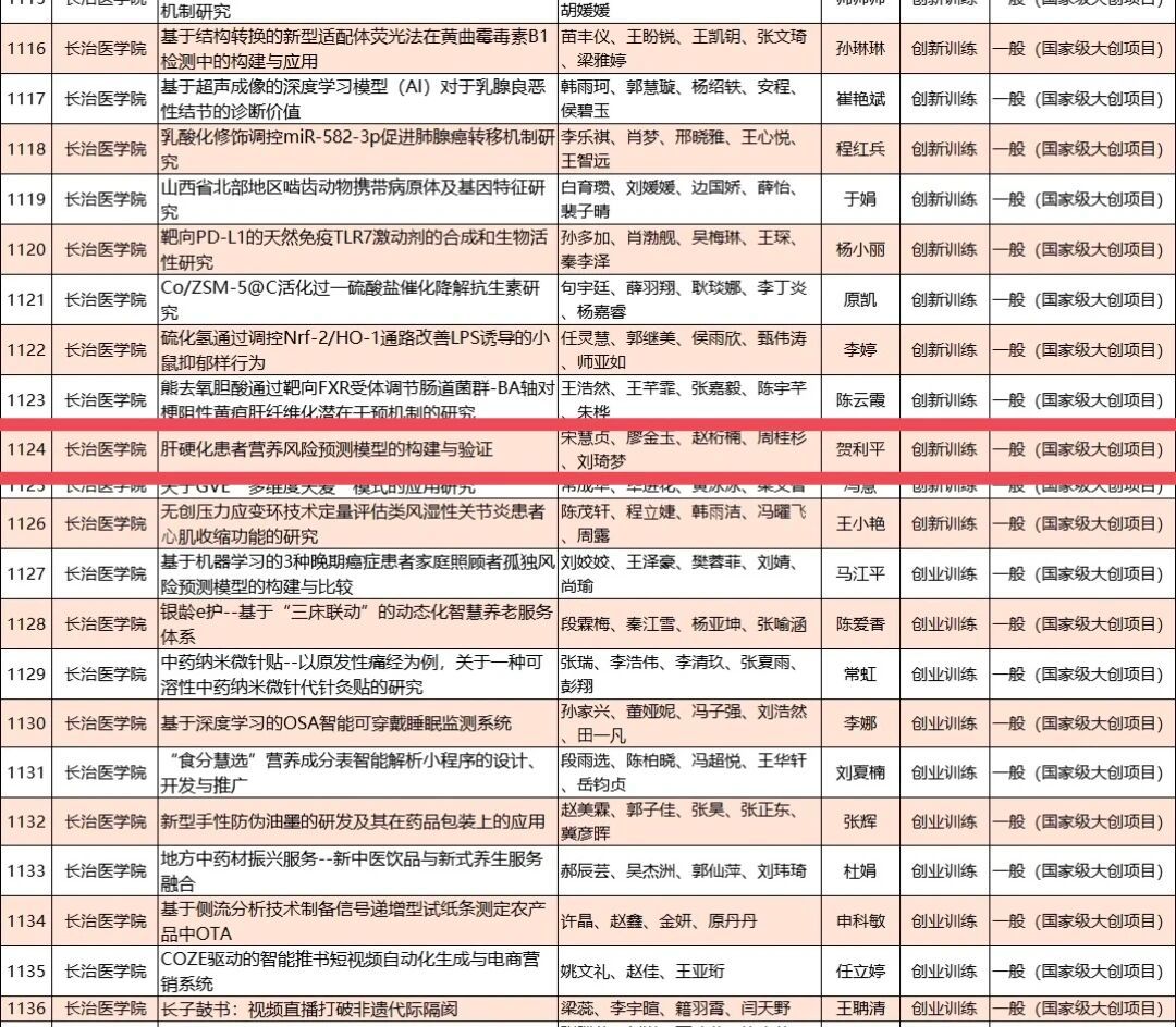 大创项目“肝硬化患者营养风险预测模型的构建与验证”获得国家级立项