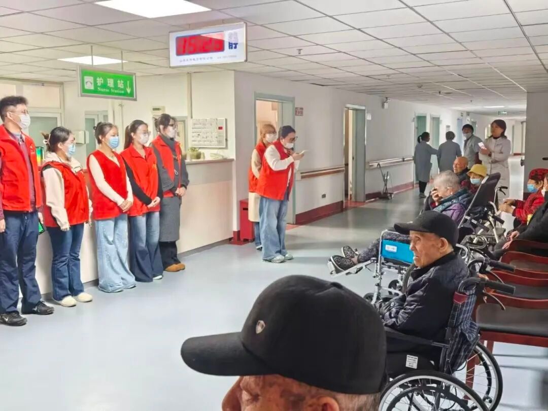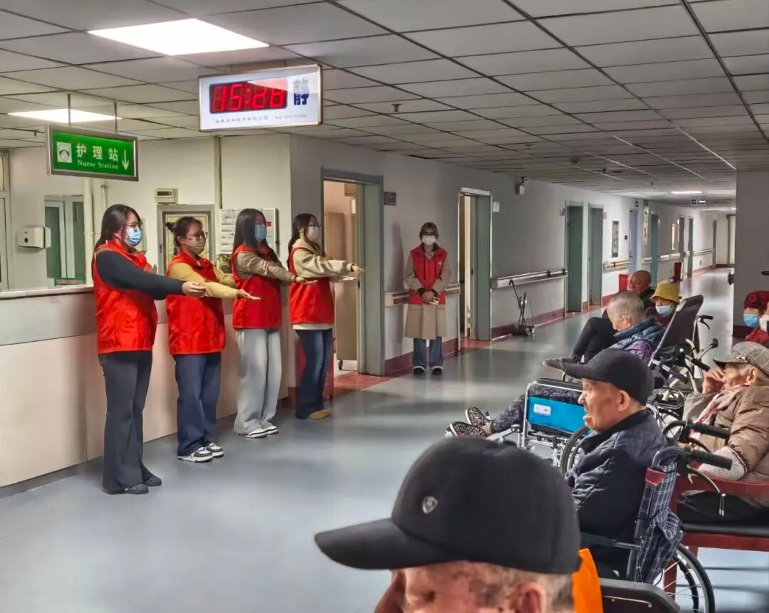 活动开始,养老院负责人对支部学生党员简要介绍了院内老人的基本情况和注意事项。随后,同学们迅速投入志愿服务之中。大家先后为老人们带来了合唱红歌、朗诵红色经典等精彩节目,老人们跟随着音乐的律动挥舞着手臂,脸上洋溢着幸福的笑容。表演结束后,党支部同学们主动向老党员请教,学习老一辈共产党人的优良作风,将红色精神内化于心、外化于行,把为民服务的宗旨落实到每一件小事中。