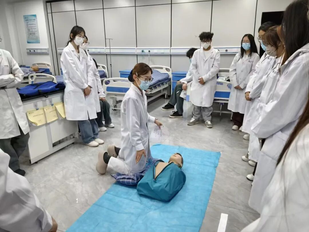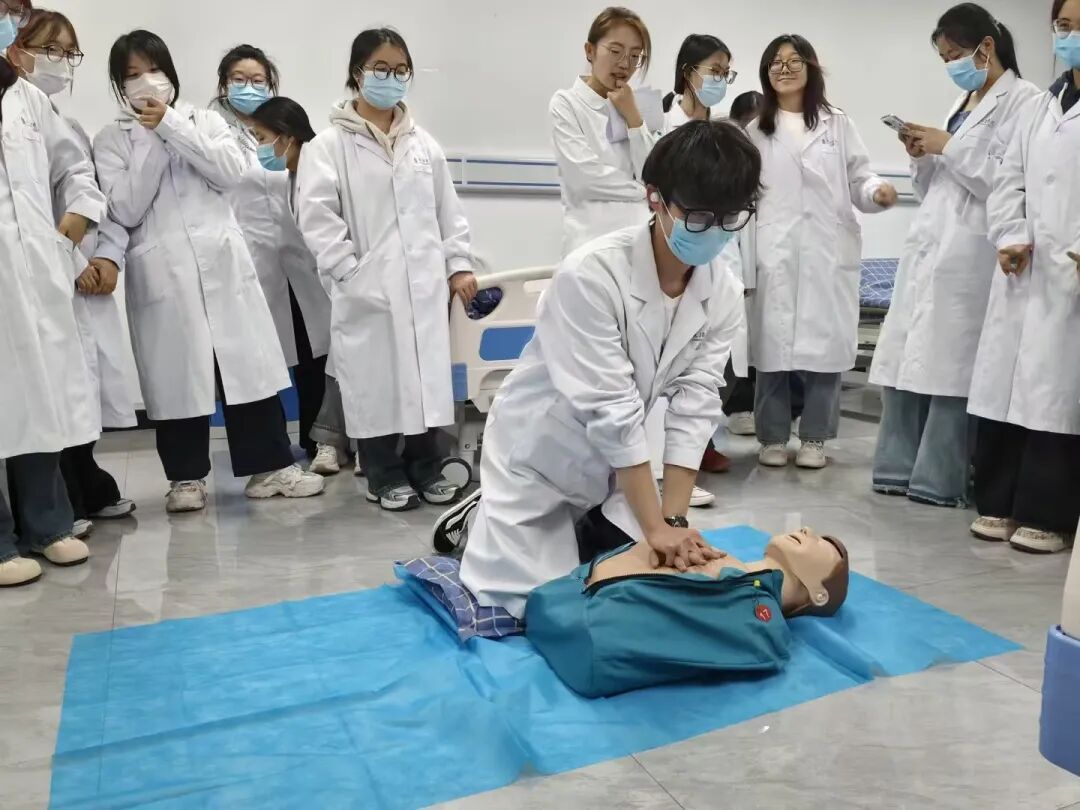 为深入贯彻落实党的二十届四中全会精神,扎实推进健康中国建设,践行“健康第一”教育理念,提升学生应急救护能力,3月31日晚,护理学院研究生党支部充分发挥党员先锋模范作用,组织4名研究生党员志愿者,面向2024级医学实验技术1-2班全体同学开展心肺复苏志愿培训活动。活动在研究生党支部书记张静老师指导下进行。